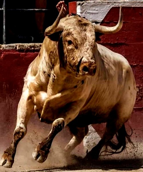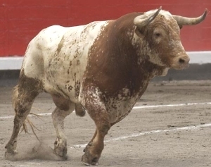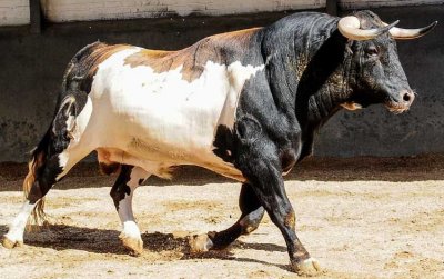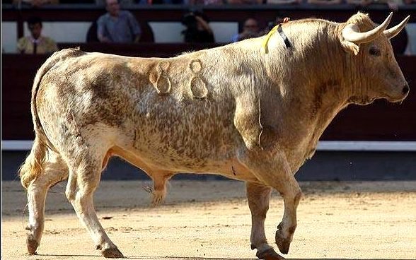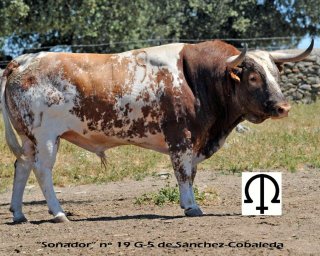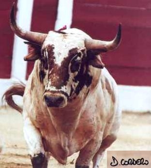 [même s'il semble avoir un peu trop de blanc sur la tête et le bas des pattes pour être d'un type berrendo très franc...]. Et encore ce toro