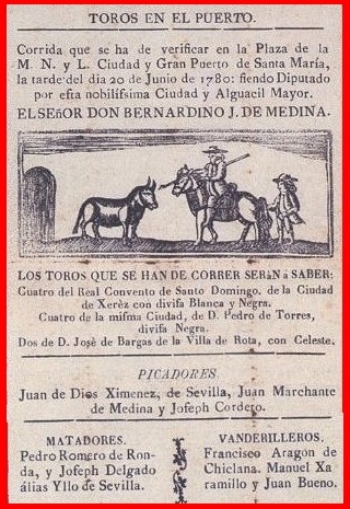 Les frères CHARTREUX de Jerez se sont taillé une réputation avec leur ganadería. Ils se trouvent vite des imitateurs avec les DOMINICAINS du couvent royal de Santo Domingo (Jerez) : début XVIIIe (1700/1730), ceux-ci acquièrent la moitié de leur bétail, et se lancent à leur tour dans l'élevage du toro bravo. Ils connaissent le succès ; d'ailleurs c'est à eux que se réfère ce qui constitue probablement la plus ancienne affiche tauromachique connue