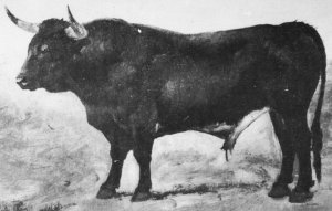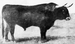 Cet élevage fameux entre les plus fameux est issu de Manuel SUÁREZ JIMÉNEZ (1862), encasté en vistahermosa par la dérivation Salvador VAREA ; le bétail est rapidement complété par du saavedra acheté chez son créateur (1863 et 1864), et pur vistahermosa, lui aussi, par la dérivation BARBERO qui est moins torista et sera bientôt dominante. Le toro ici en exergue, magnifique de type, s'appelle "BARCELON" : c'est le toro d'alternative de Ángel FERNÁNDEZ "VALDEMORO", le 13 octobre 1872 à Madrid. Un peu cornidelantero et beaucoup moins beau : "ROMPELÍN"