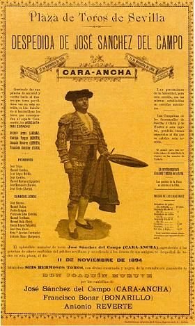 , qui annonce la même ganadería à Séville avec "José Sánchez del Campo (CARA ANCHA), dont ce sera la despedida programmée, Francisco Bonar (BONARILLO) et Antonio REVERTE". Mais pourquoi est-ce encore le nom de Joaquín MURUVE qui est annoncé à Pamplona en 1905 ?