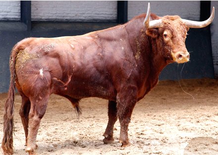 (Description du toro ci-contre : magnifique exemplaire d'Alonso MORENO de la COVA, colorado