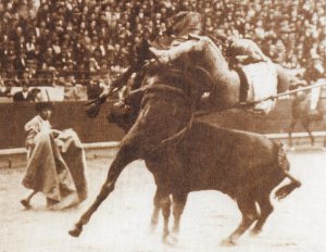 à Barcelone, en 1918 - donc un pablorromero d'avant le croisement saltillo -, piqué par Antonio IBÁÑEZ "MARINERO". Par contre, voici, en 1925 à Madrid, un pablorromero