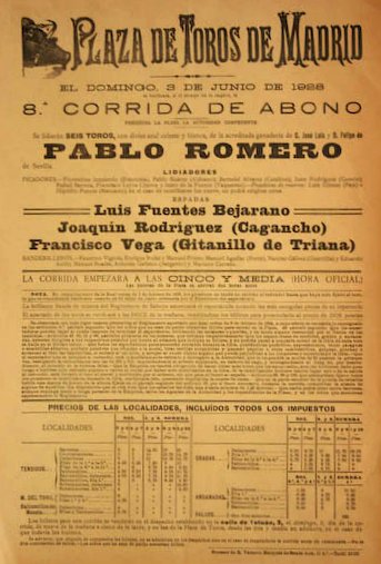 de 1941... Le 23 septembre 1928, à Ecija, un pablorromero blesse le picadOr Alfonso JIMÉNEZ "LAGARTIJA" ; il en mourra le 25.