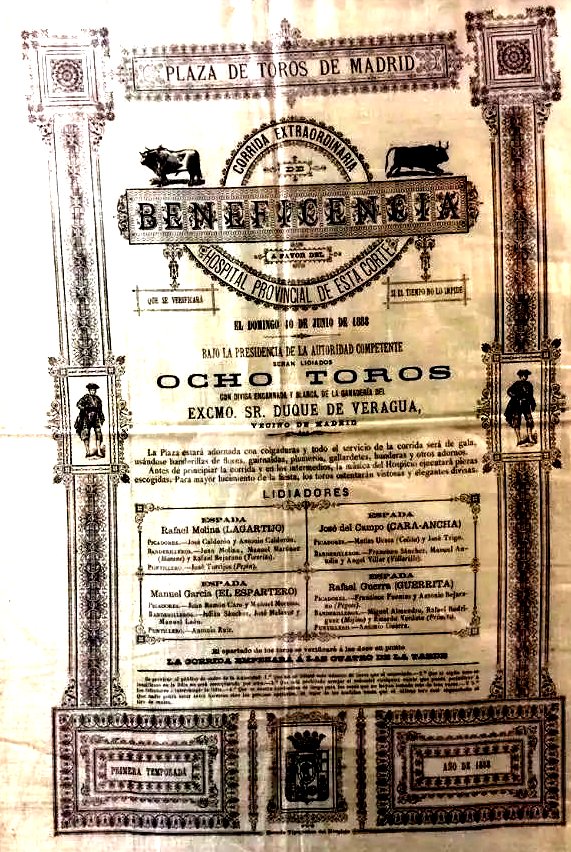 Il n'est pas étonnant que, le 10 juin 1888 à Madrid [soit 2 mois après la présentation des PABLO-ROMERO dans la capitale], la prestigieuse corrida de bienfaisance au profit de l'hôpital provincial