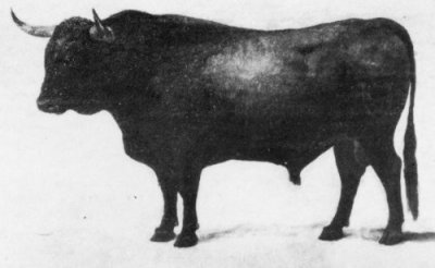 Cependant, une fois, une seule, en 1879, le duc met un toro qui nest pas de lui sur un nombre réduit de vaches. Son excellent ami Antonio MIURA FERNÁNDEZ (1861-31 mars 1893), le fameux ganadero sévillan, a bien le même point de vue sur l'importance de la consanguinité, mais tous deux sacrifient leurs convictions par amitié. Le duc envoie à Séville un très joli becerro colorado