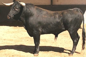 Officiellement, les pedrajas et les jandilla sont élevés séparément, mais l'on sait ce que valent ces déclarations de principe [comme les promesses électorales, elles n'engagent que ceux qui les croient ! dirait un célèbre homme politique français...] ; d'ailleurs, quand il présente ses toros ou qu'il commente leur combat, le ganadero parle lui-même de croisements pedrajas X jandilla. On voit ici en en-tête un novillo né en 2002 : il n'est que moyennement typé pedrajas.